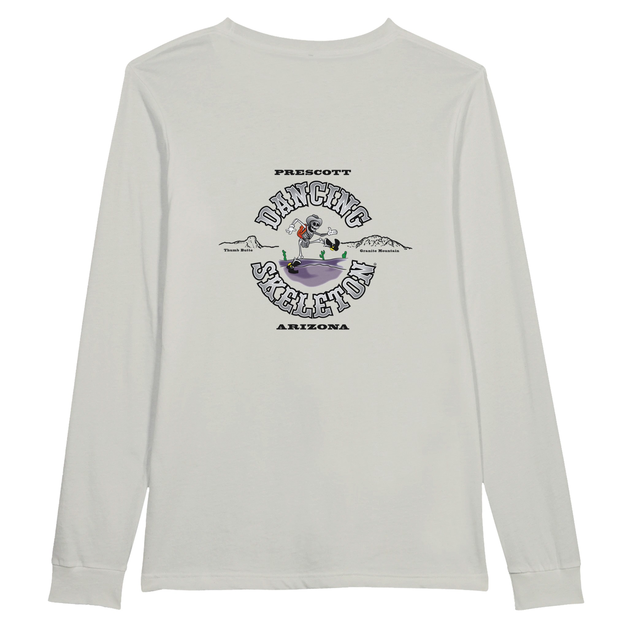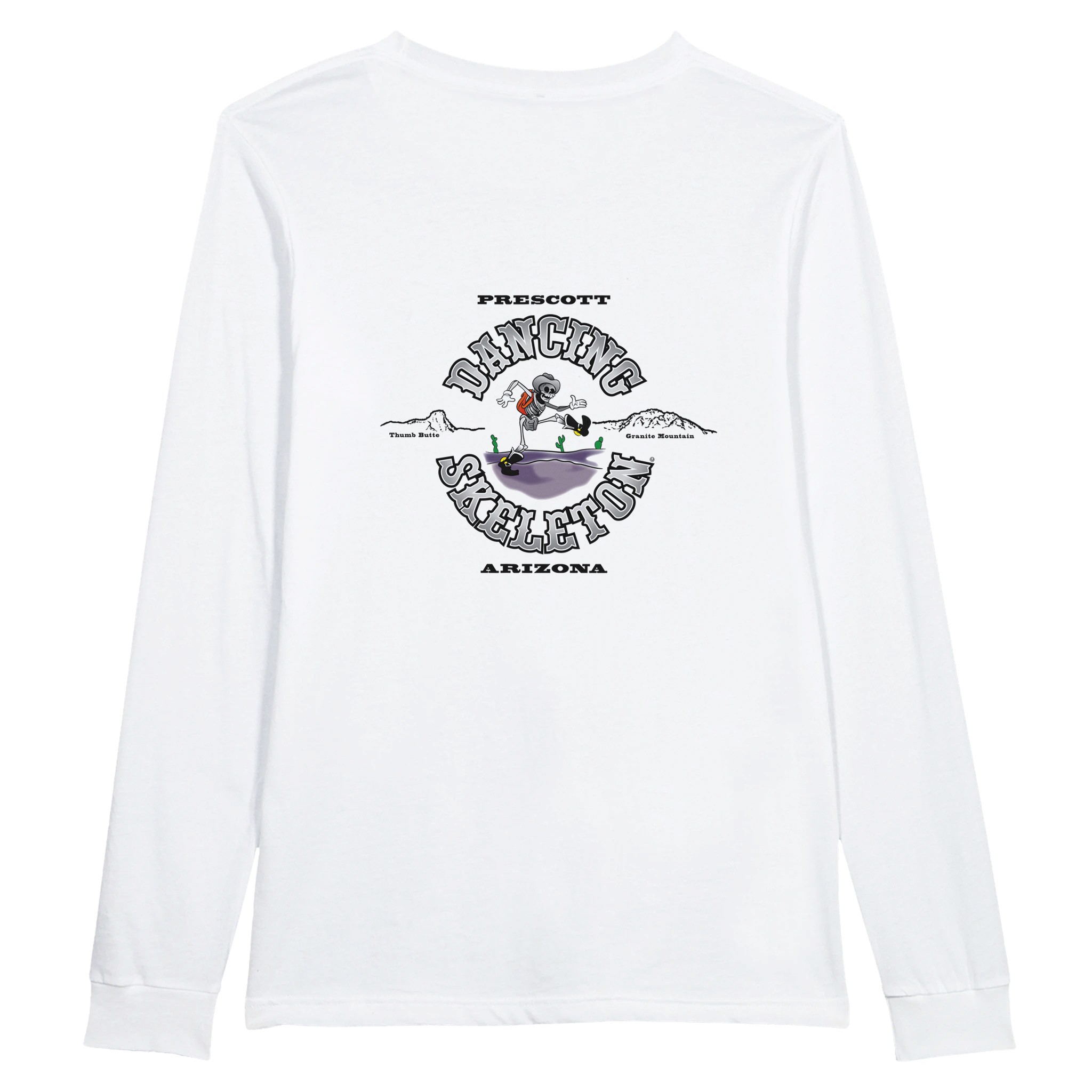 All shirts come with the small Dancing Skeleton Logo on the upper left of the chest.