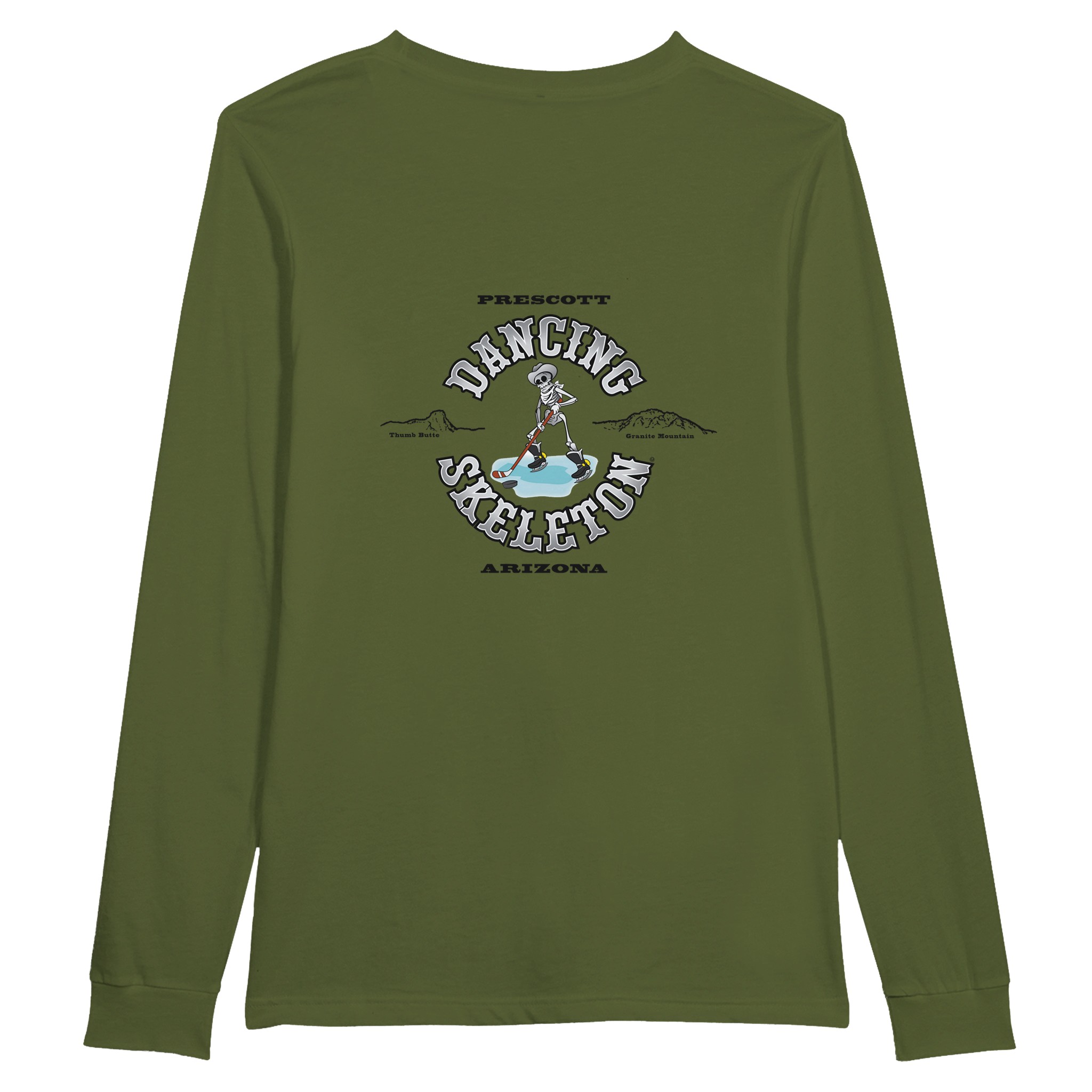 All shirts come with the small Dancing Skeleton Logo on the upper left of the chest.