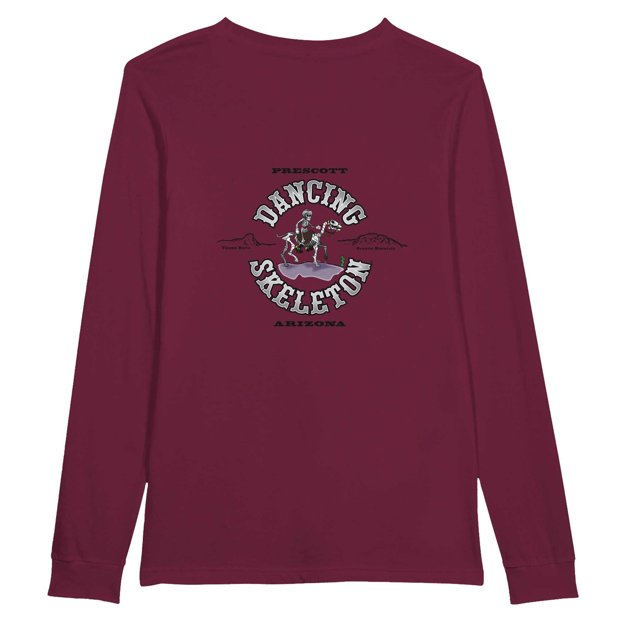 All shirts come with the small Dancing Skeleton Logo on the upper left of the chest.